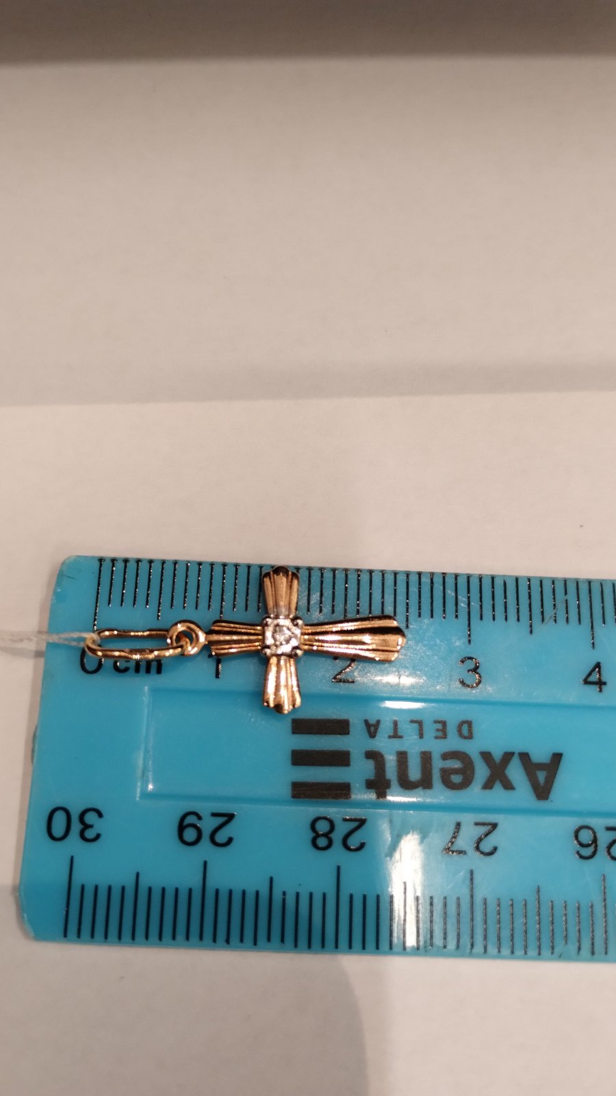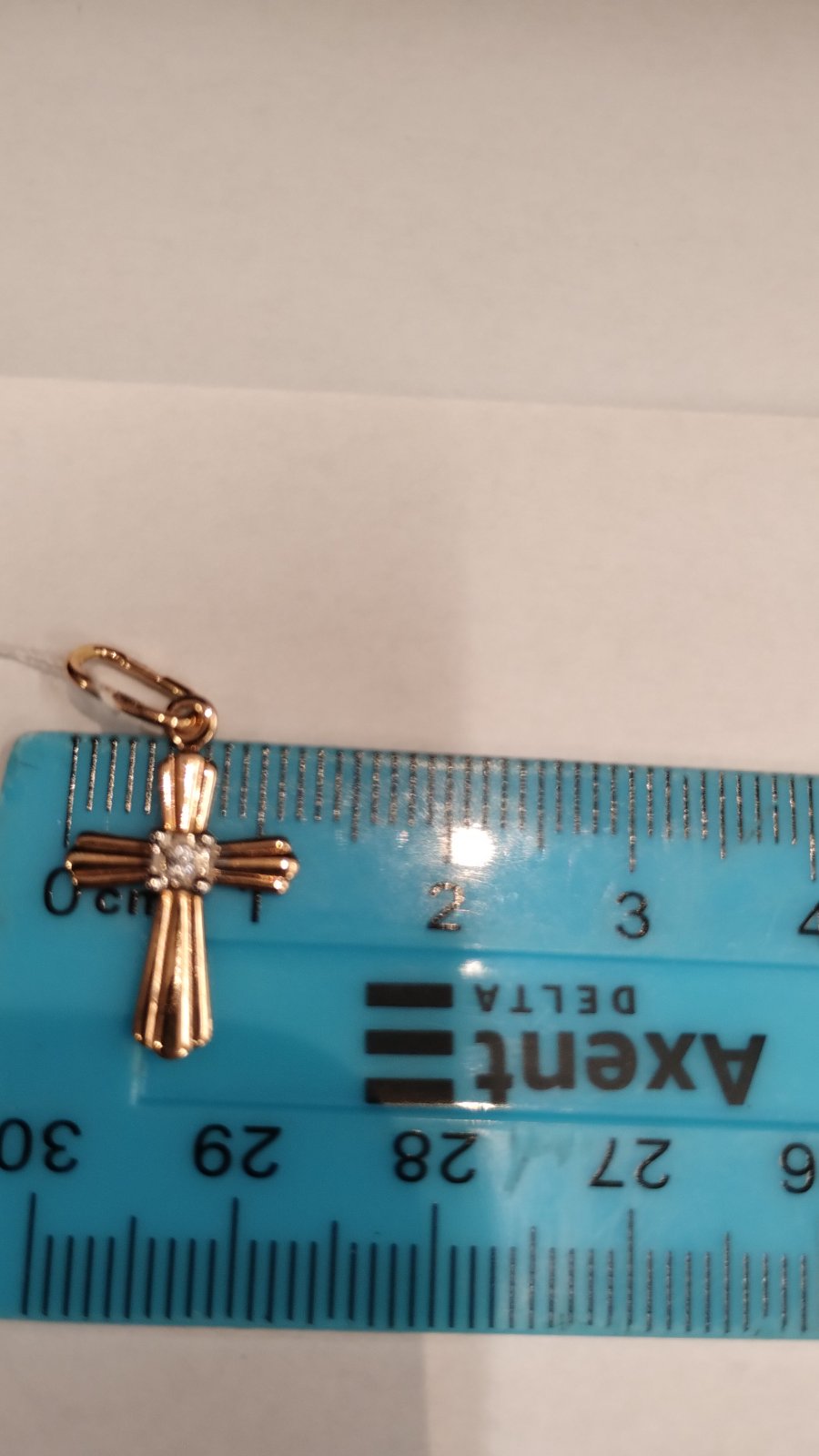 Золотий хрестик у червоному з білим кольорі з цирконом 01-19324689