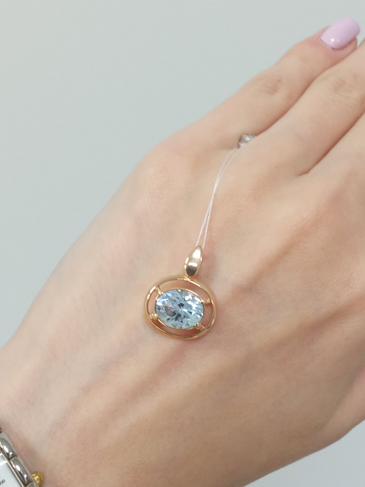 Золотий кулон червоного кольору з блакитним топазом «Овал» 01-200109675
