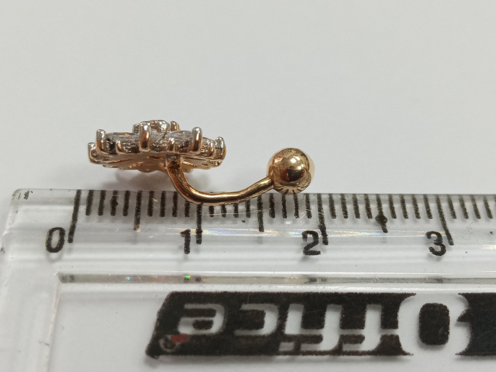 Золотий пірсинг червоного з білим кольору з цирконом 01-200292396